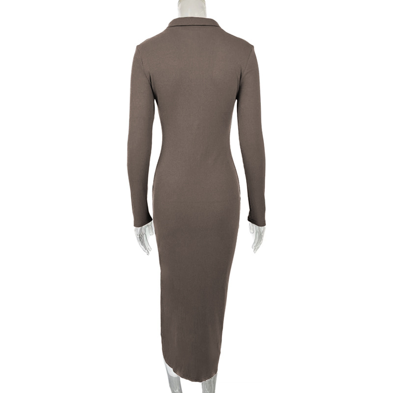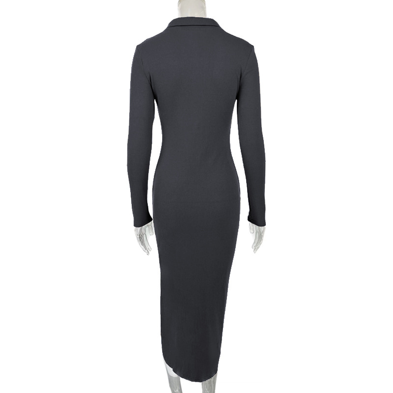 Trendy Autumn Winter Women Sexy Slim Polo Collar Rib Slit Dress